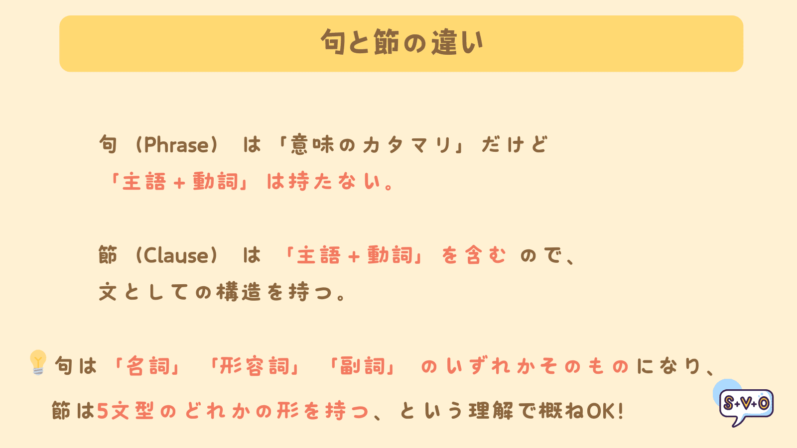 ✅ 句と節は、それぞれ「名詞」「形容詞」