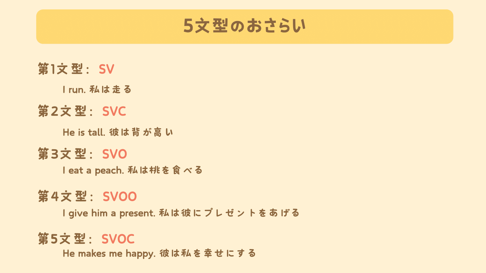 5文型が基本の文の骨組みを説明するもの